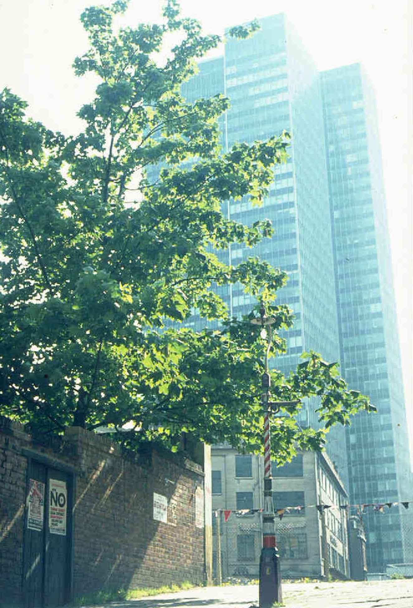 A tree next to the passageway into Tolmers Square from North Gower Street