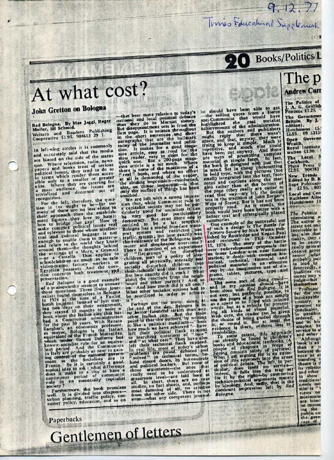 John Gretton, Times Eduacational Supplement, 9 December 1977