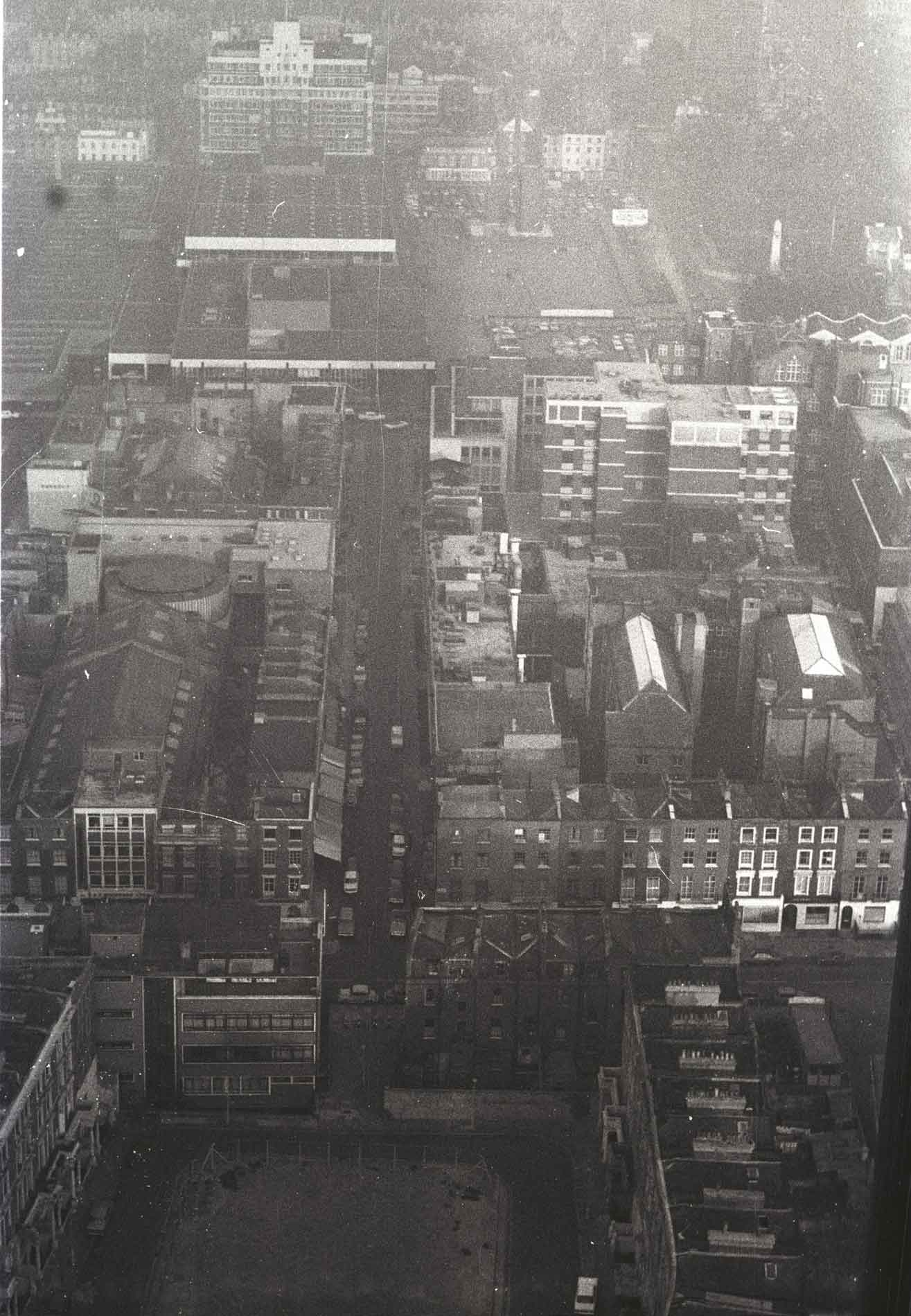 View from Euston Tower of Tolmers Square, down Euston Street to Euston Station and Eversholt Street