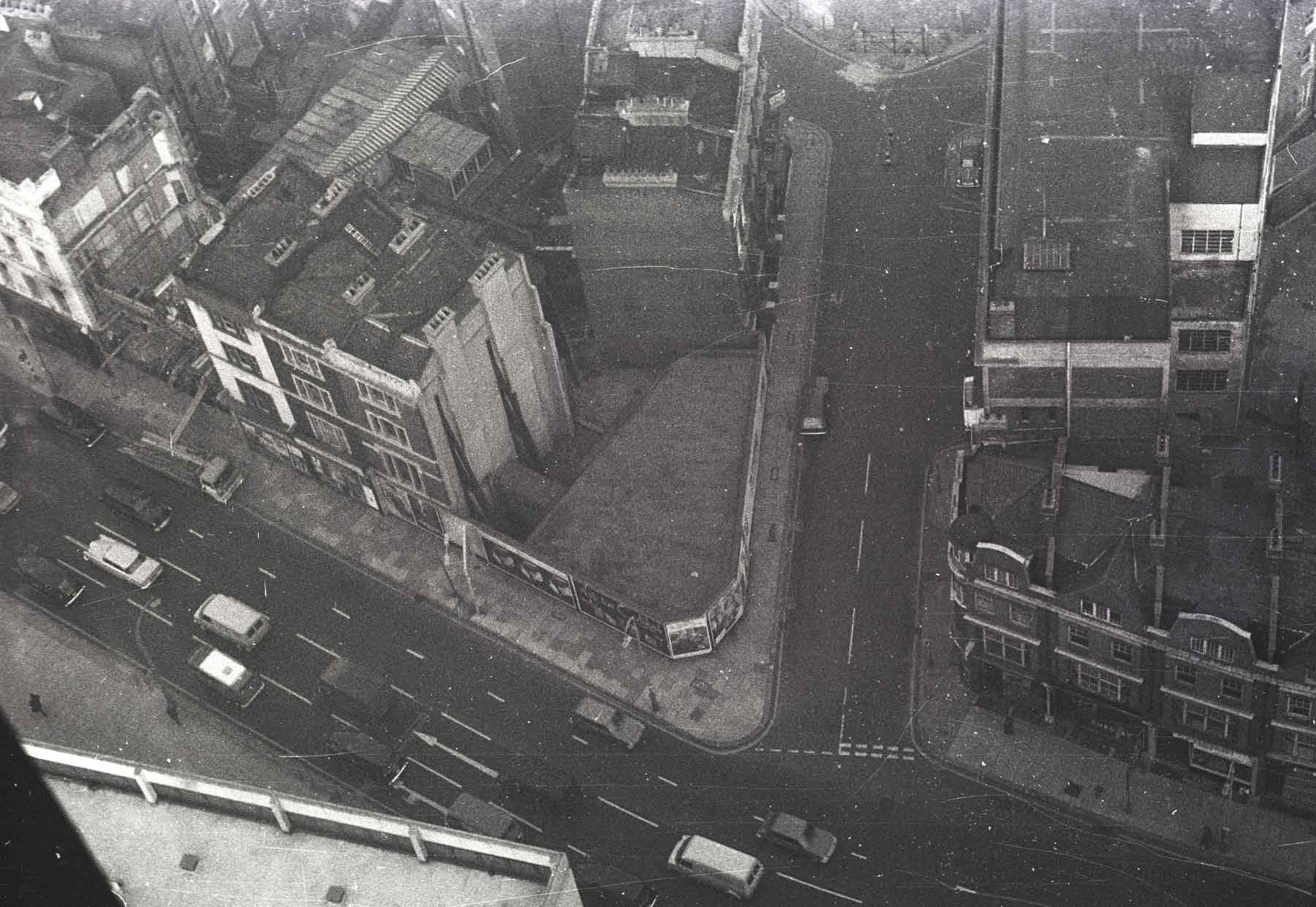 View from Euston Tower looking almost directly down at the entrance of Tolmers Square from Hampstead Road.