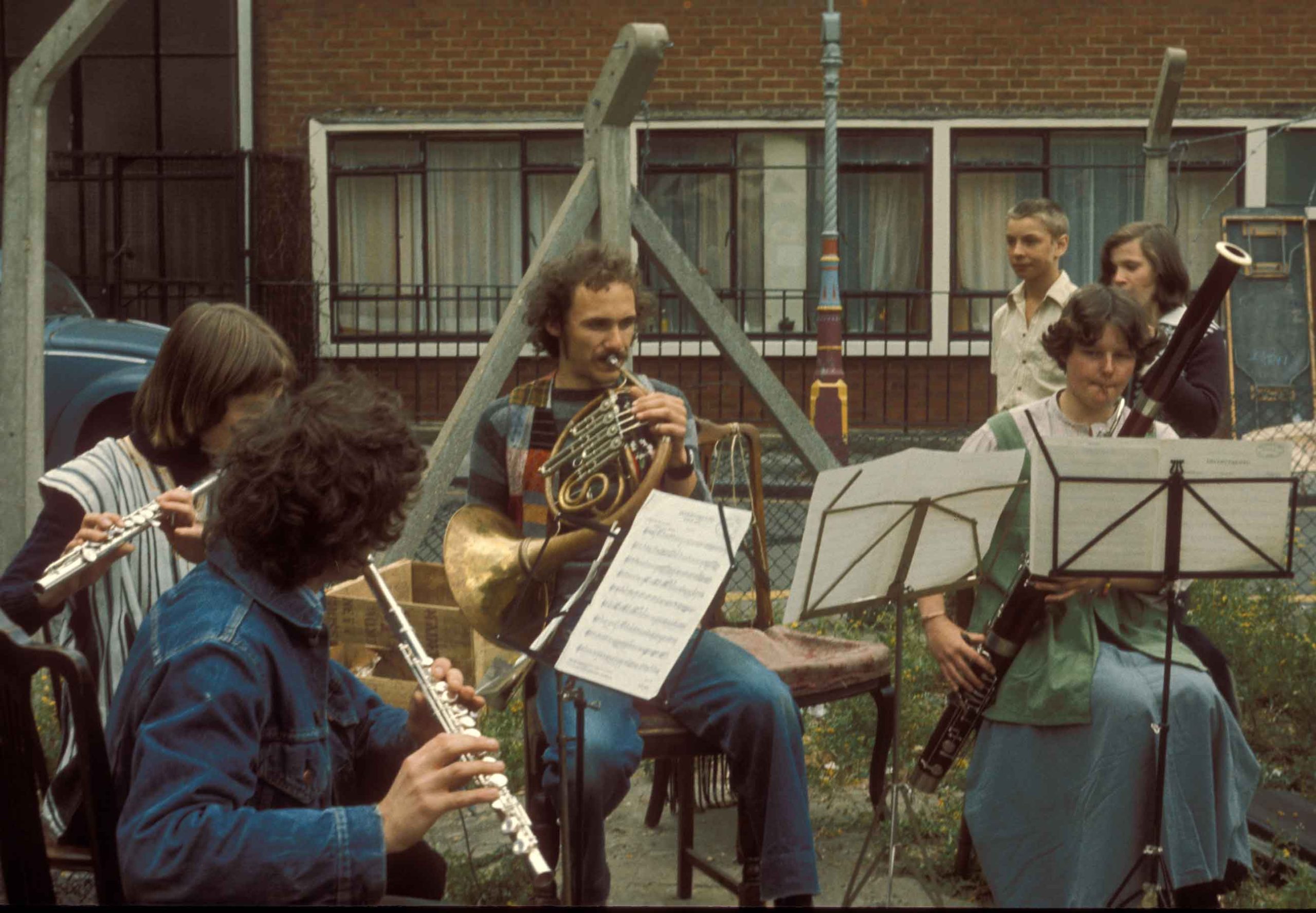 Flags, a banner and a parachute greet visitors at the entrance to Tolmers Square ...