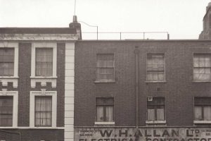 Electrical contractor with flats above and workshop behind at 78 Hampstead Road.