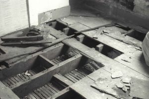 Holes in the floor to facilitate the decay of 213 North Gower Street