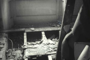 Rear view of 213 North Gower Street left open to the elements