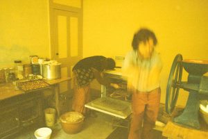 Grinding wheat and baking bread in the basement of the Community house
