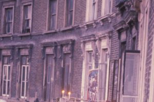 Adrienne waiting to leave her home at 5 Tolmers Square prior to its demolition