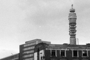 View of the Post office tower from Tolmers Square after partial demolition of the ...