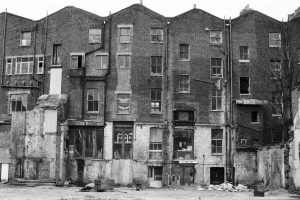 Currugated iron on the south side of the square