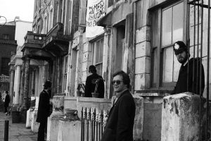 Squatters in Tolmers Square discussing options following partial demolition of the south side.
