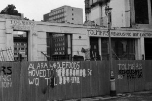 Graffiti on a house on the south side of Tolmers Square following the eviction ...