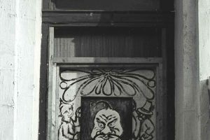 Decorated front door of 19 Tolmers Square.