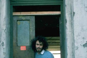 Posing in the doorway of 19 Tolmers Square