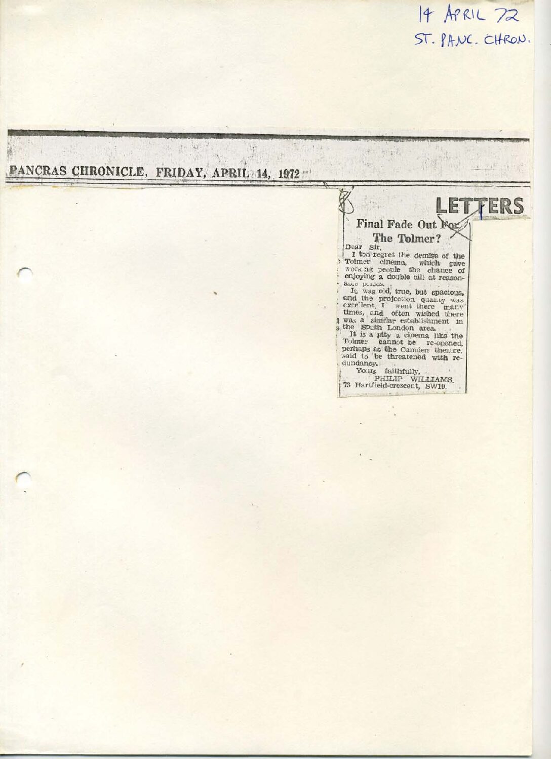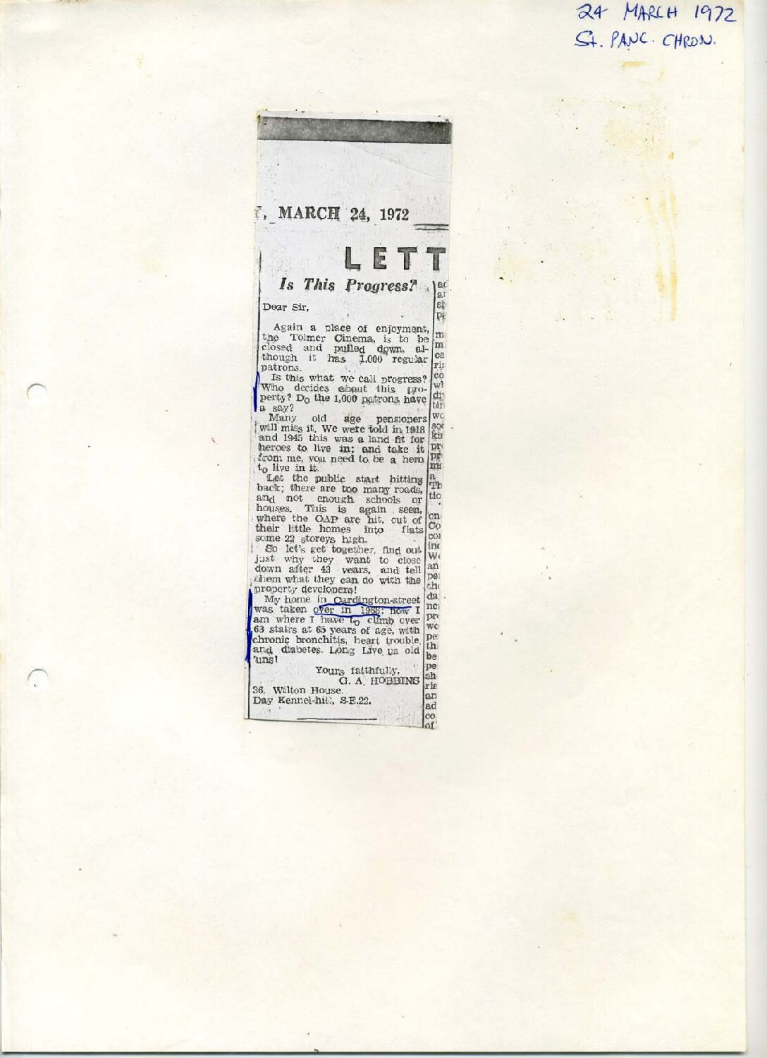 The Tolmer cinema that once stood in the centre of Tolmers square