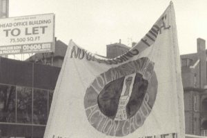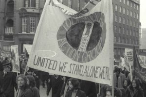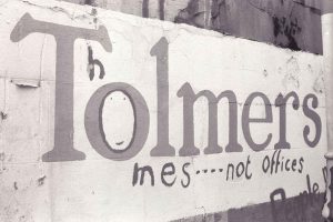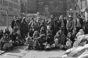 Campaign group photo of local squatters, Tolmers Square, 1975
