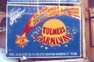 Flyposted poster advertising Tolmers carnival in 1975