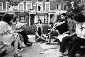 Squatters meet with Council leader Frank Dobson after their eviction to discuss rehousing options.