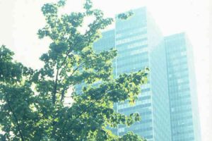 A tree next to the passageway into Tolmers Square from North Gower Street